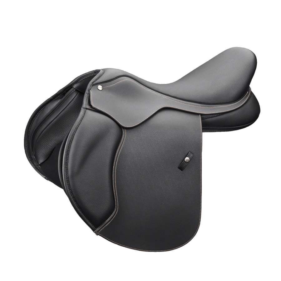 • With this saddle riders will be keen to fly over any jump and will feel secure in their position with a supportive deep seat and the improved comfort and grip of this supple and durable saddle. In its new look, this saddle looks like a leather saddle - with the difference that, after a long training day, they can simply hose the sweat and dirt off their easy care saddle!